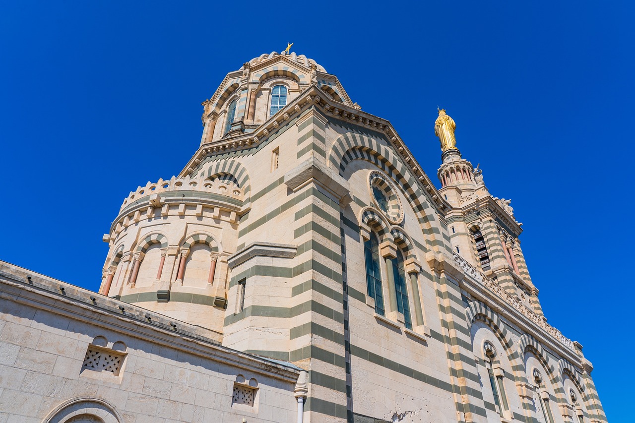 Notre Dame de la Garde, perched on a hill, offers a panoramic view of the city and the sea.