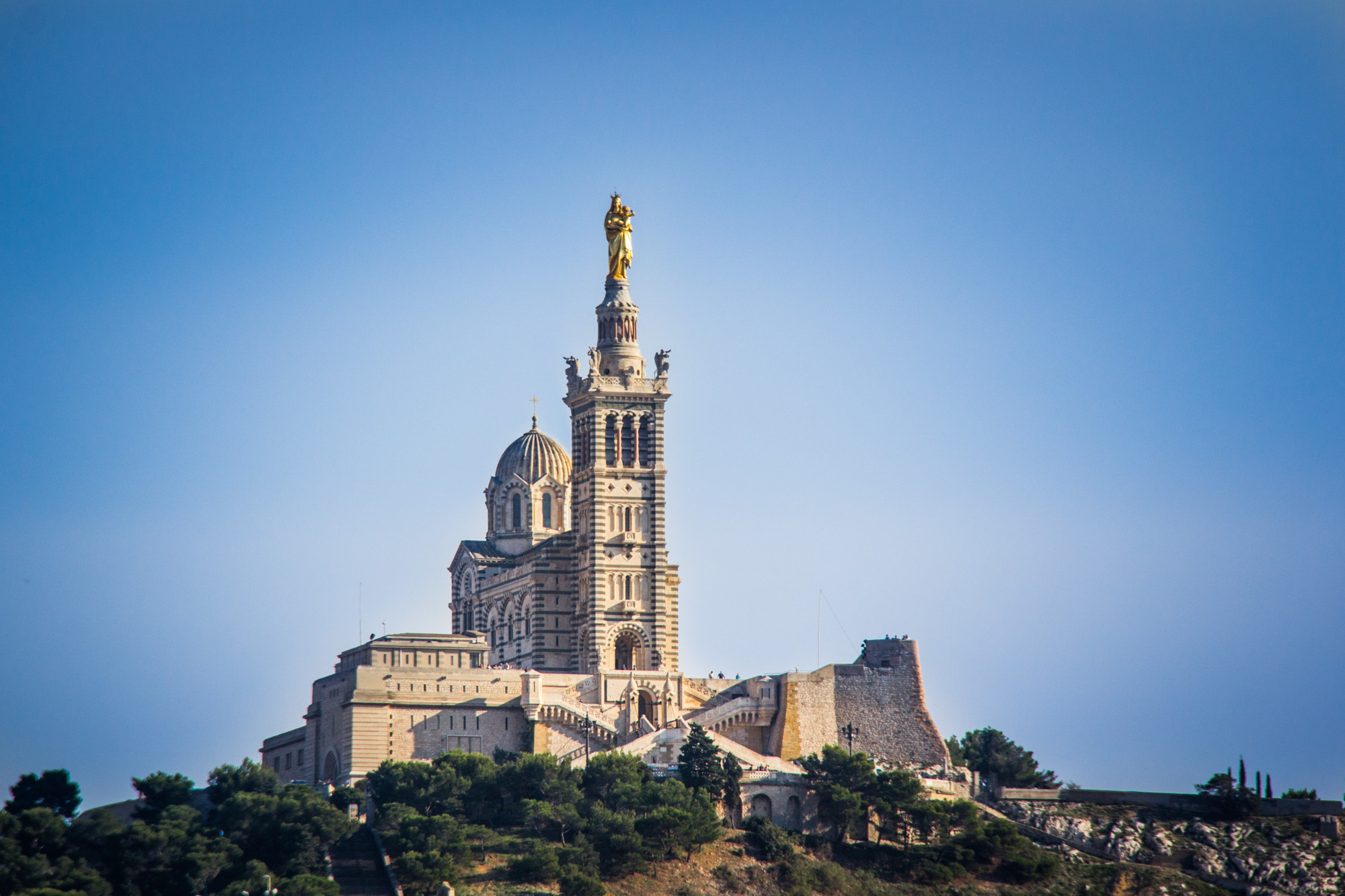 The history of Notre-Dame de la Garde dates back to the Middle Ages, when the location of the hill was used as a place of pagan worship.